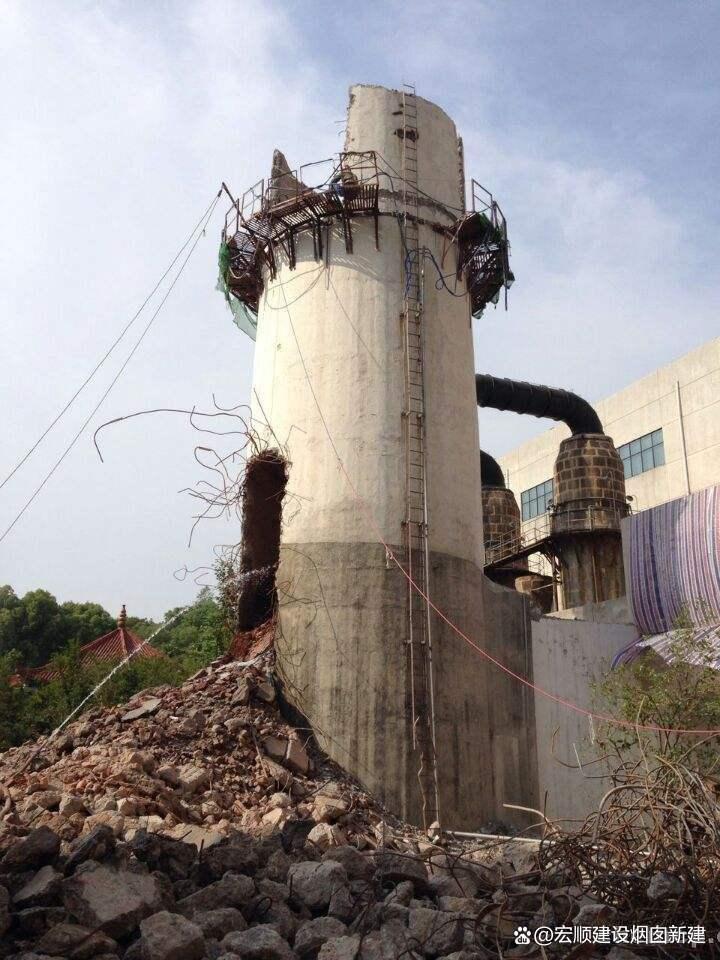 2.操作方式:從頂部開始,使用大錘、撬杠、電鎬等工具逐層向下拆除。拆除的磚塊或混凝土塊通過繩索或吊籃運(yùn)送至地面,避免高空墜落。需搭設(shè)環(huán)形貼壁腳手架或操作平臺,確保工人安全。
